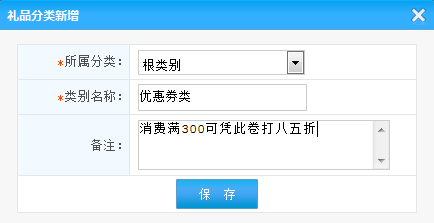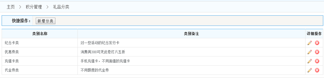 禮品分類列表:展示系統(tǒng)中設置的所有的禮品分類